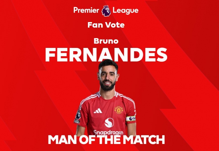 1射2傳,英超官方:B費當選曼聯(lián)3-0萊斯特城全場最佳