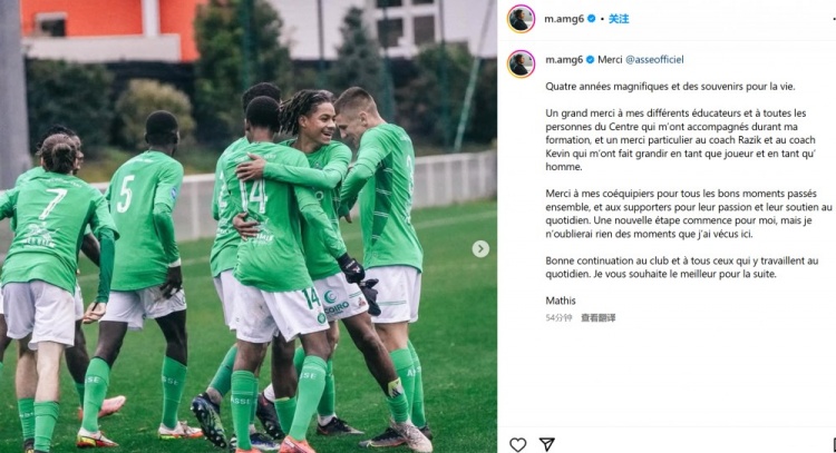 阿穆古表示:“謝謝@圣埃蒂安俱樂(lè)部。我在這里度過(guò)了4年美好時(shí)光,這也將是一生的回憶。非常感謝我成長(zhǎng)過(guò)程中的老師和教練們,尤其感謝Razik和Kevin教練,他們讓我在場(chǎng)上場(chǎng)下都變得更為成熟。感謝我的隊(duì)友們,我們一起度過(guò)了很多美好的時(shí)光。也感謝球迷們的熱情支持和陪伴?!?/p>
