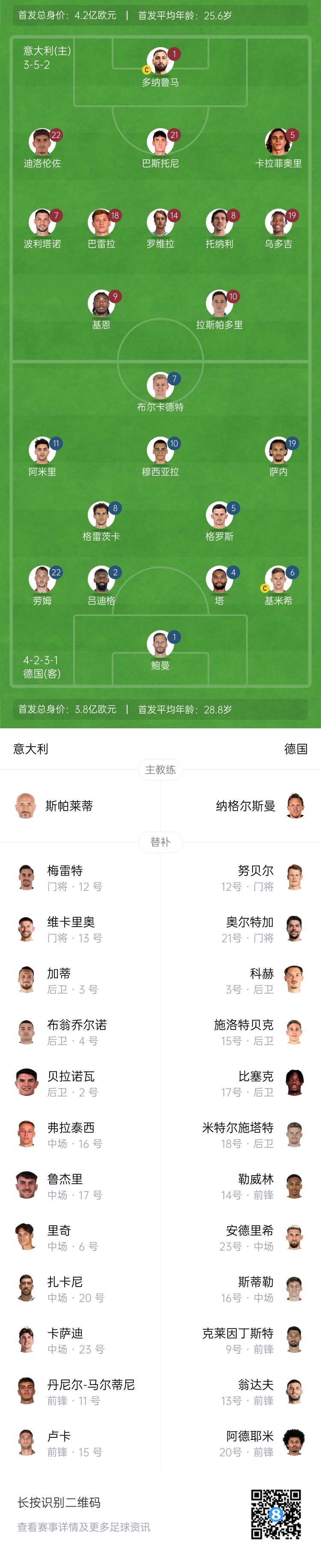 3月21日訊 北京時間今天3點(diǎn)45分,歐國聯(lián)1/4賽決賽首回合,意大利主場迎戰(zhàn)德國。賽前雙方公布首發(fā)陣容。