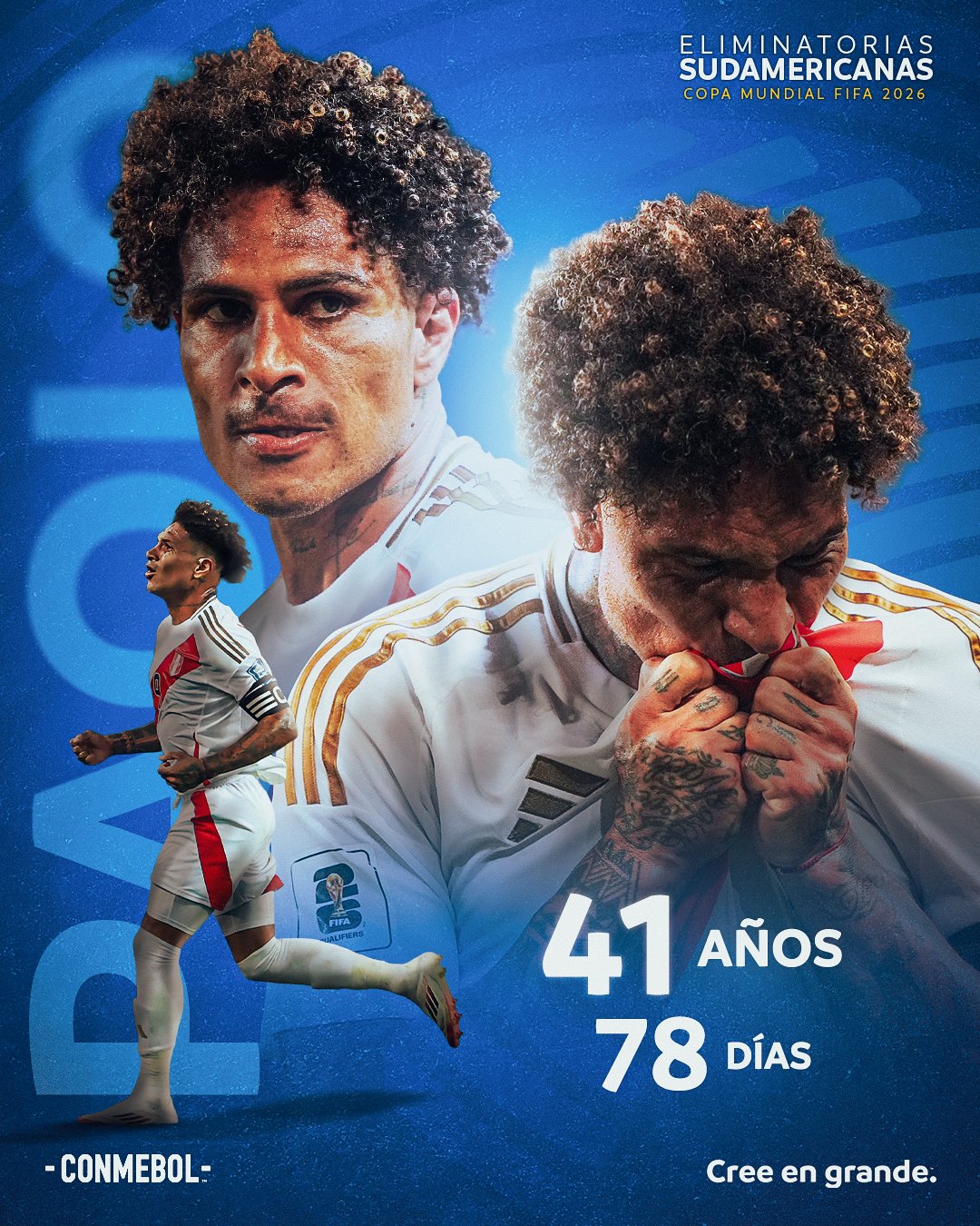 第45分鐘,保羅-格雷羅得球后轉(zhuǎn)身低射破門。格雷羅成為南美世預(yù)賽最年長進(jìn)球球員(41歲78天),此前紀(jì)錄由秘魯球員德爾加多(Faustino Delgado)保持,他在1961年對陣哥倫比亞比賽中進(jìn)球(40歲81天)。