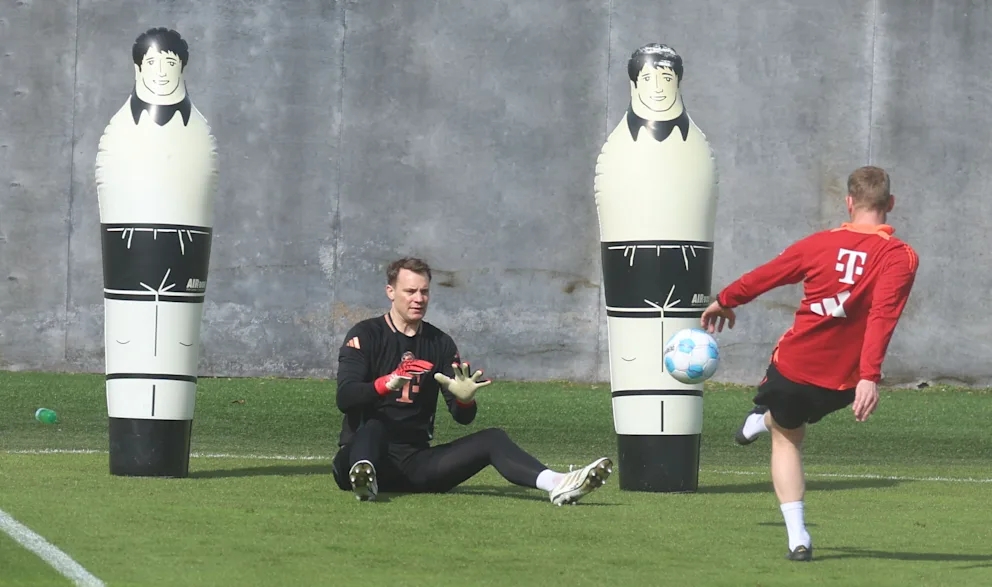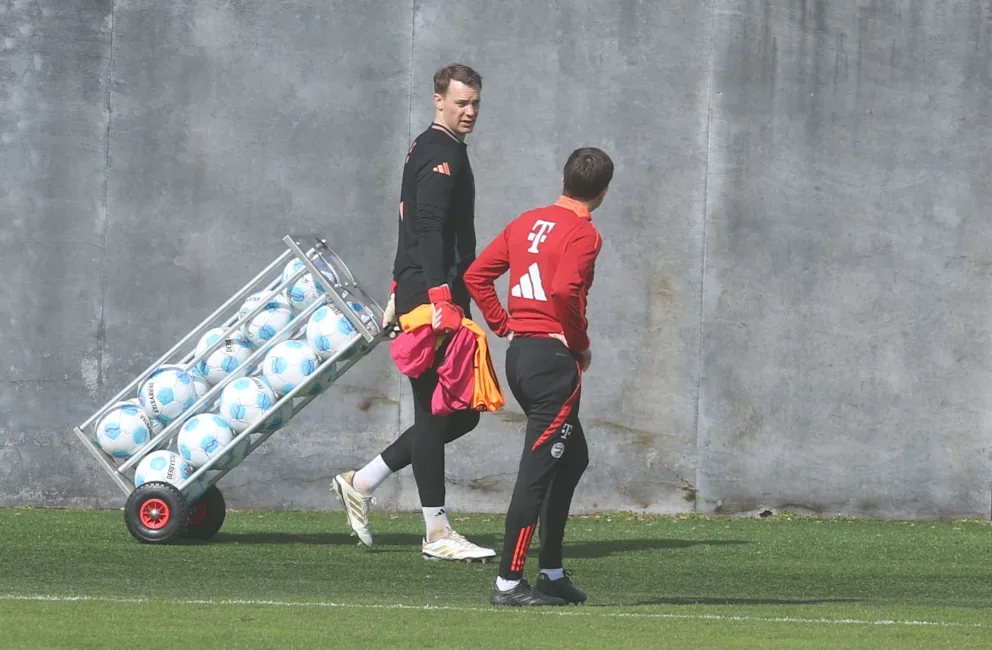 訓(xùn)練情況原本和以往一樣順利,但僅僅35分鐘后訓(xùn)練就結(jié)束了。諾伊爾被看到和教練員一起收起足球,他跳過了跑動(dòng)部分的訓(xùn)練,推著球車慢慢走回更衣室,最終未能完成當(dāng)日的訓(xùn)練。顯然,他的小腿出現(xiàn)了肌肉反應(yīng)。