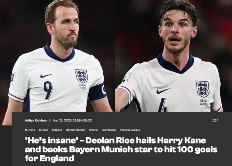 3月24日訊 英格蘭隊(duì)2-0戰(zhàn)勝阿爾巴尼亞的世預(yù)賽中,凱恩打進(jìn)了代表三獅軍團(tuán)的第70個(gè)進(jìn)球。賴斯在談到凱恩時(shí)表示,凱恩一定能夠完成國家隊(duì)百球成就。