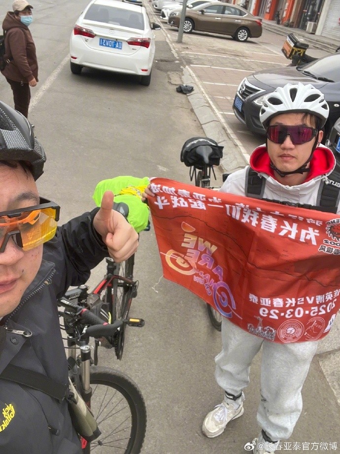 3月25日訊 根據(jù)亞泰俱樂部官方的消息,兩名亞泰球迷用長春騎行到大連的方式,前往大連客場為亞泰助威。