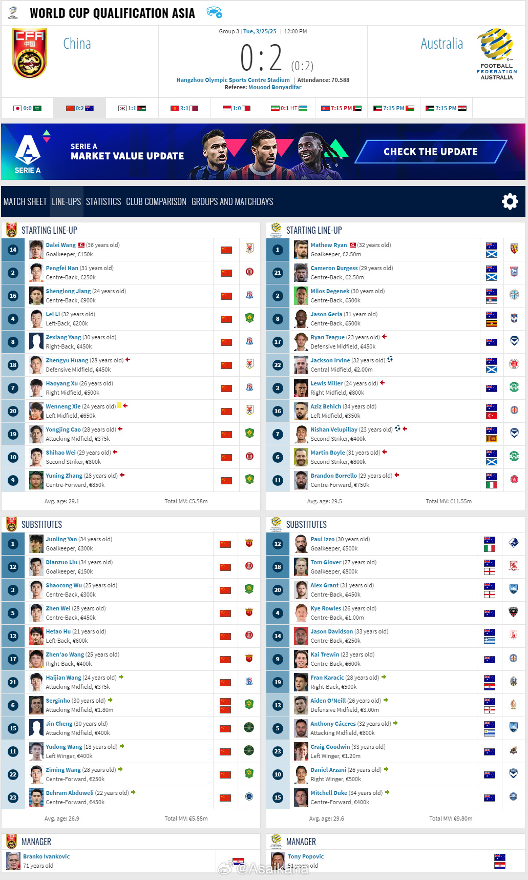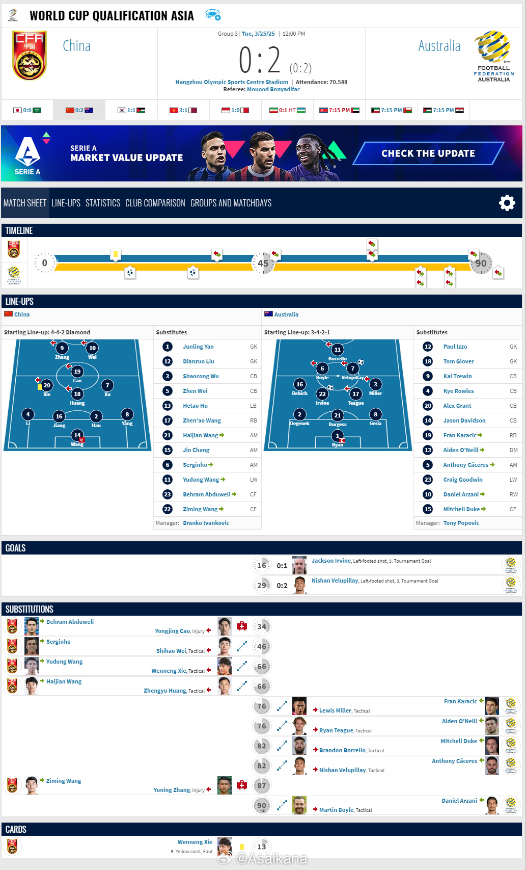 2026年美加墨世界杯亞洲區(qū)預(yù)選賽,中國0-2澳大利亞比賽報(bào)告 ???。