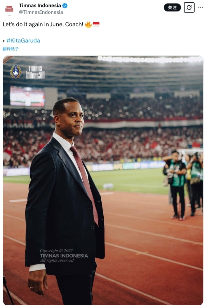 印尼國家隊(duì)官推今日更新社媒,曬出克魯伊維特在場邊執(zhí)教的照片,并配文寫道:“讓我們6月份再來一次,教練!”