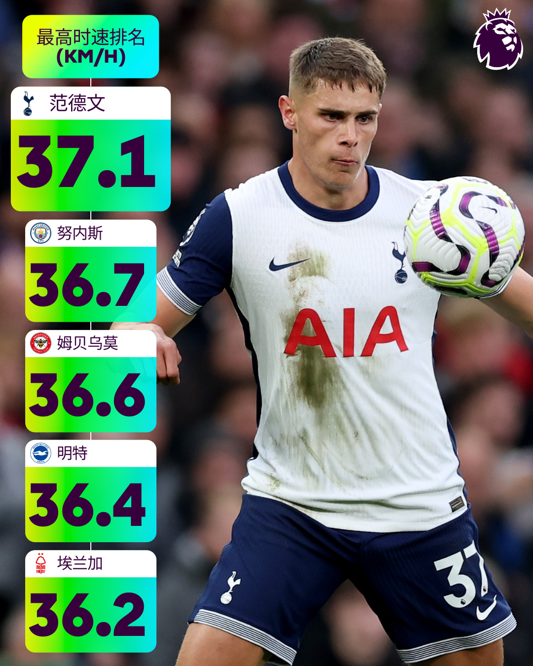 千萬不要和他拼速度,本賽季英超至今,球員最高時速排名!