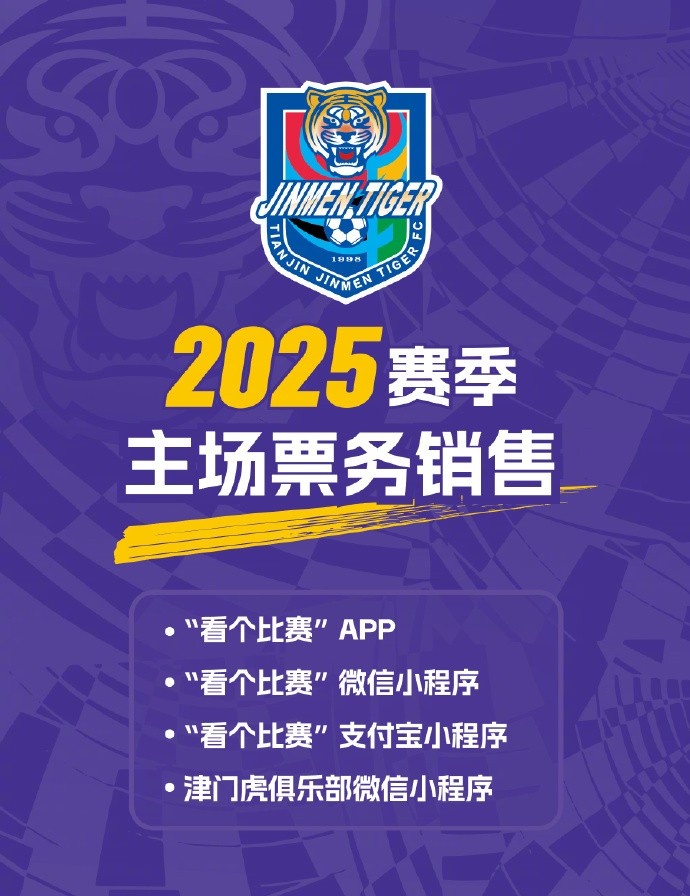 開售提示! 2025華潤(rùn)飲料中超聯(lián)賽第4輪天津津門虎VS北京國(guó)安的比賽將于今晚20:00開售! 標(biāo)簽: 足球 中超 中國(guó)足球 天津津門虎 轉(zhuǎn)載