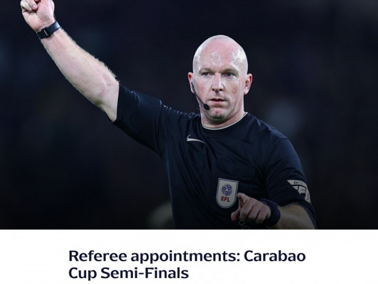 2月5日訊 聯(lián)賽杯半決賽次回合執(zhí)法裁判公布,西蒙-胡珀執(zhí)法紐卡vs阿森納,克雷格-鮑森執(zhí)法利物浦vs熱刺。