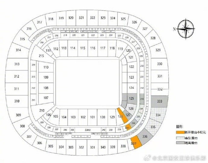 親愛的球迷朋友們大家好,鑒于本輪中超聯(lián)賽北京國安vs成都蓉城場次門票已售罄,為了最大限度的滿足球迷購票需求,經(jīng)北京國安足球俱樂部與北京賽區(qū)委員會協(xié)商,現(xiàn)增開工人體育場128區(qū)、237區(qū)、337區(qū)的共計636個座位作為散票公開對外銷售,票價為440元。