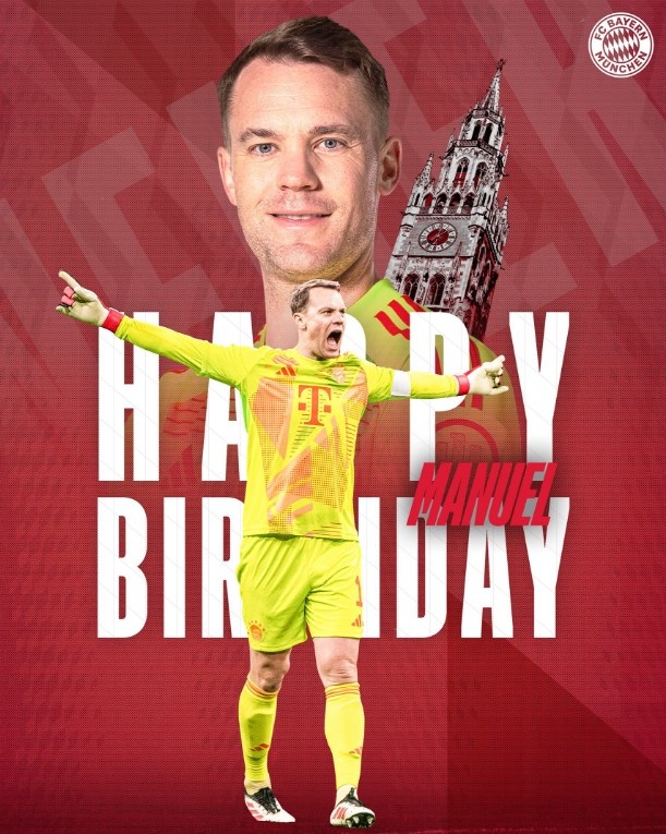 3月27日訊 德國(guó)隊(duì)和拜仁官方社媒更新動(dòng)態(tài),為諾伊爾送上生日祝福。
