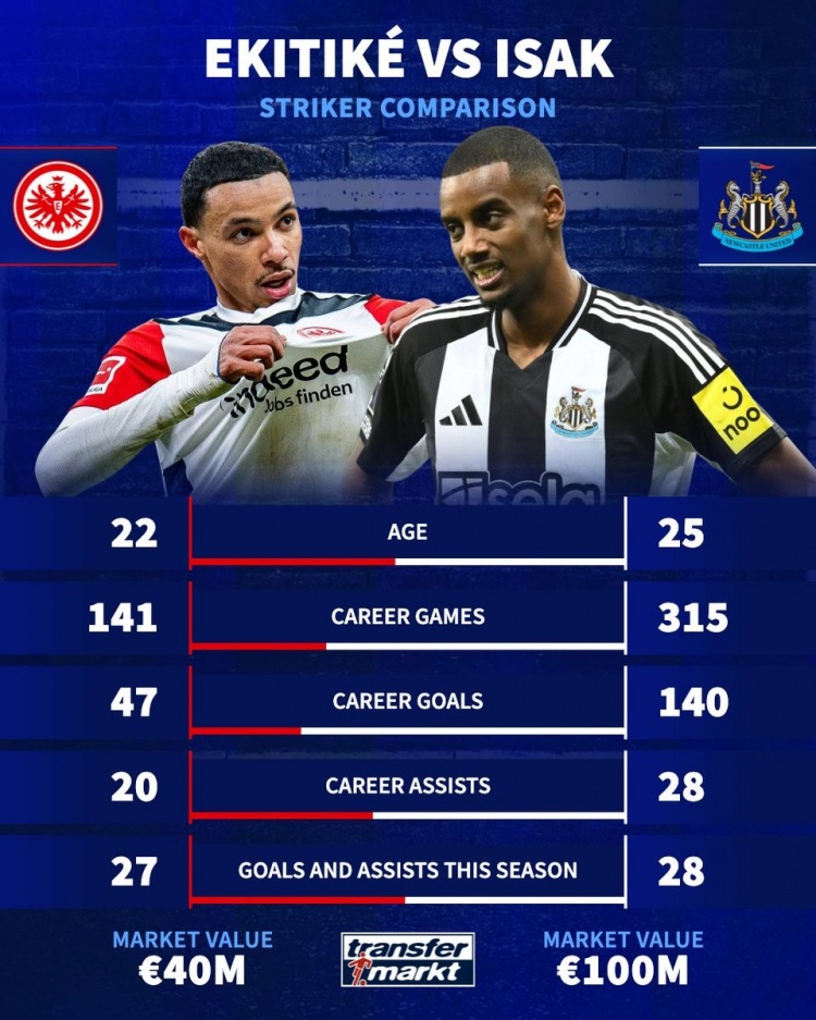 伊薩克(紐卡斯?fàn)枺?5歲):生涯315場140球28助攻,本賽季直接參與28球,德轉(zhuǎn)身價1億歐元
