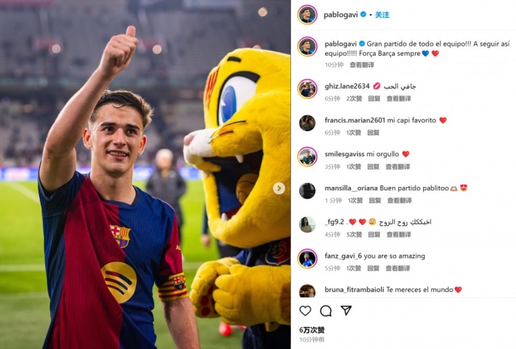 3月28日訊 巴薩在本輪西甲補賽3-0完勝奧薩蘇納,20歲的加維首次作為隊長首發(fā)登場。他也在賽后通過社媒曬出自己的慶祝照,并配文:“全隊踢出了一場精彩的比賽!繼續(xù)加油,巴薩永遠前進!” 標簽: 足球 西甲 巴塞羅那 奧薩蘇納