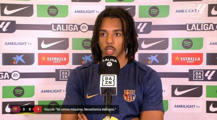 3月28日訊 巴薩3-0戰(zhàn)勝奧薩蘇納。賽后,巴薩后衛(wèi)孔德接受dazn采訪。