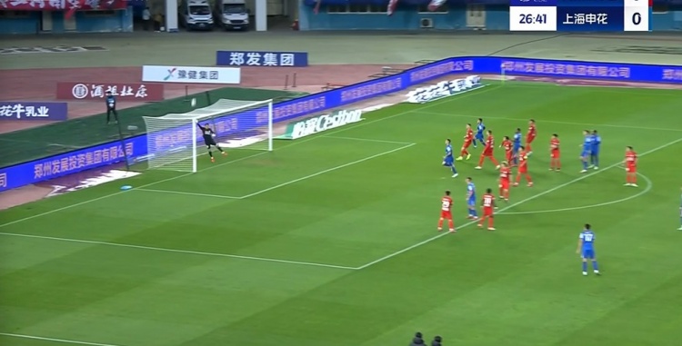第27分鐘,申花前場左側(cè)定位球機會,高天意主罰,皮球直奔十分角,最終擊中門框彈出底線↓