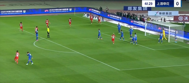 第39分鐘,申花前場連續(xù)的進攻,吳曦左側(cè)肋部的凌空抽射被門將抱住↓