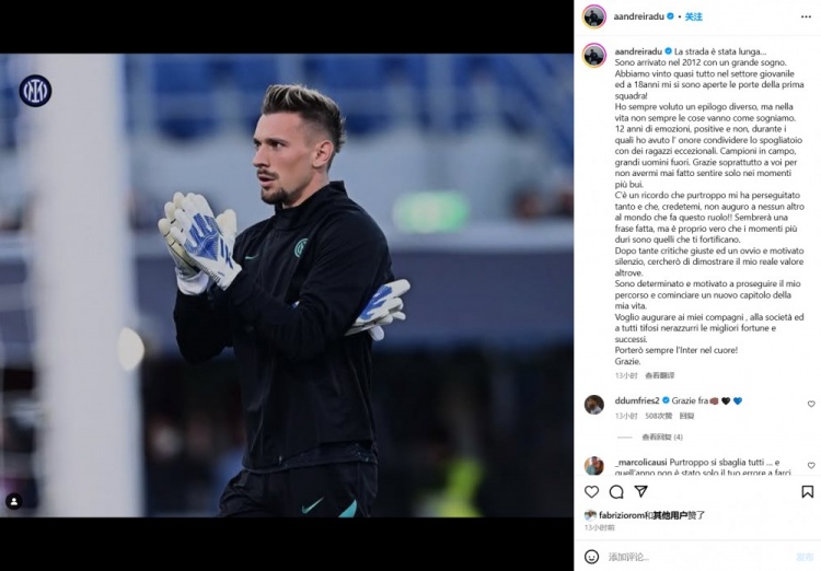 2月5日訊 門將拉杜冬窗離開國米,永久轉(zhuǎn)會加盟威尼斯。在社交媒體中,拉杜長文告別了國米。