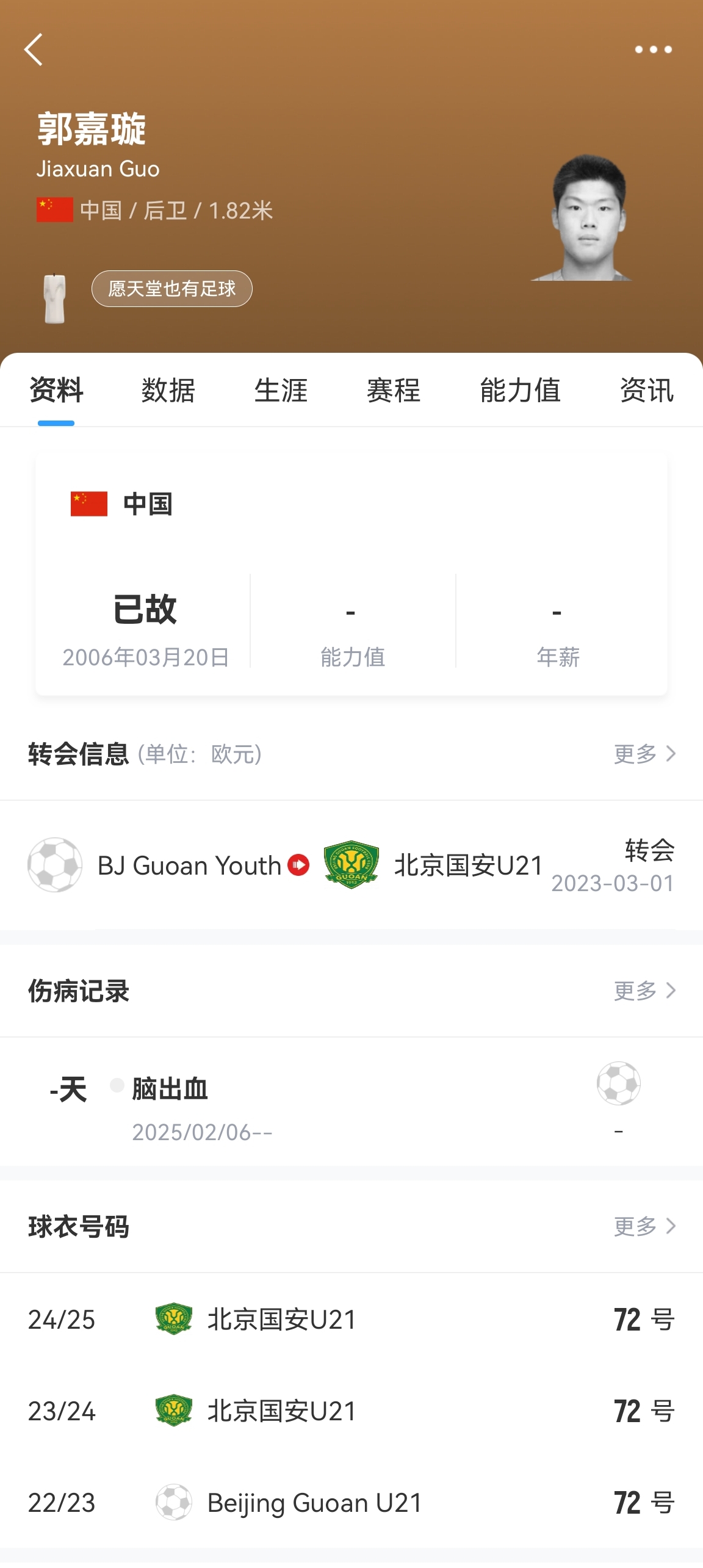 3月19日,國(guó)安小將郭嘉璇在天壇醫(yī)院去世,年僅18歲,當(dāng)時(shí)距離他19歲的生日只有1個(gè)小時(shí)。