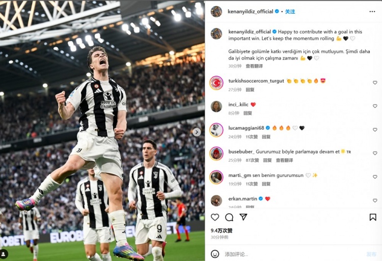 伊爾迪茲通過社媒曬出自己的慶祝照,并配文:“很高興能用進(jìn)球?yàn)檫@場重要的勝利做出貢獻(xiàn)!讓我們繼續(xù)當(dāng)前的勢頭。”