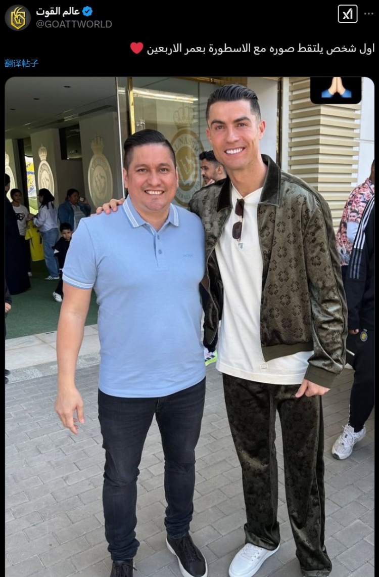 2月5日訊 C羅在今日迎來40歲生日,阿拉伯媒體號(hào)《GTW》曬出了一位球迷和C羅的合影。