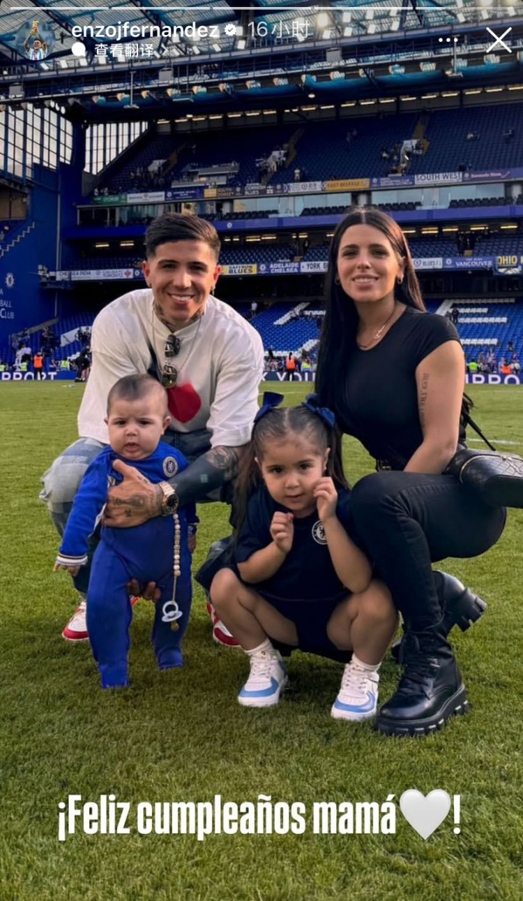 恩佐曬出一家四口的合照,并寫道:生日快樂,媽媽!