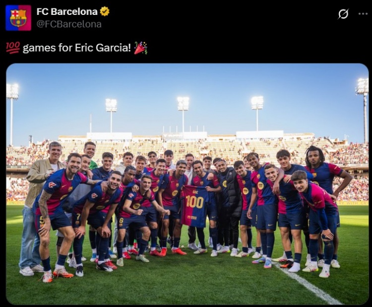 3月31日訊 在本輪西甲,巴薩4-1大勝赫羅納。本場比賽埃里克-加西亞首發(fā)登場,這是他加盟巴薩以來各項賽事第100次出場,賽后他也獲贈球隊100號定制球衣,并與全隊球員合影留念。 標(biāo)簽: 足球 西甲 巴塞羅那