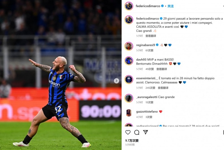 迪馬爾科也在賽后通過社媒曬出了自己的慶祝照并配文:“過去29天我都在想著這樣的時刻,只想著我如何才能夠幫助到隊友。保持冷靜,繼續(xù)前進(jìn)????????各位再會!”