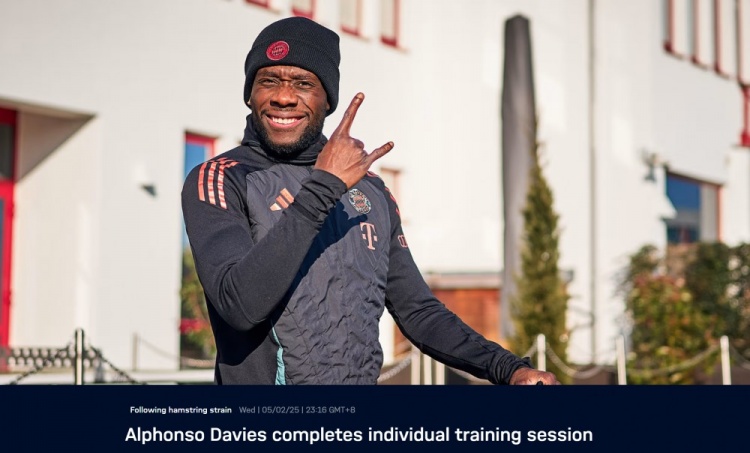在上個月對陣費耶諾德的歐冠比賽中,阿方索左腿筋拉傷,一直缺席至今。據(jù)拜仁官方跟進,本周三,阿方索完成了受傷后的第一堂訓(xùn)練課。