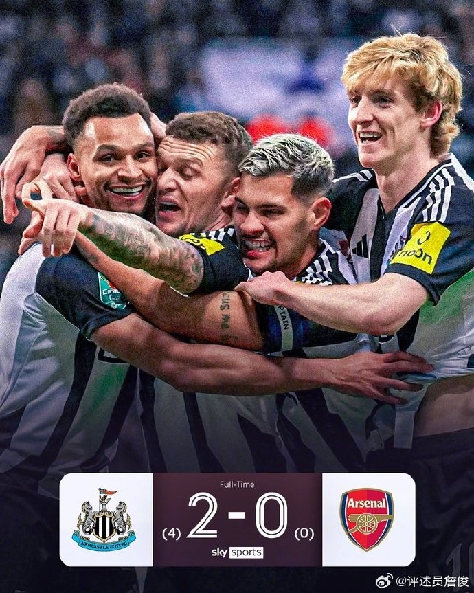 2月6日訊 英聯(lián)杯半決賽次回合,紐卡2-0阿森納總比分4-0進(jìn)決賽。