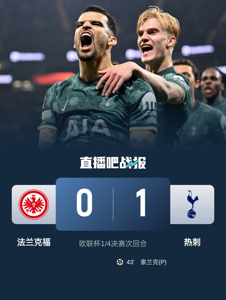 歐聯(lián)-熱刺1-0客勝法蘭克??偙确?-1晉級四強 索蘭克點射制勝