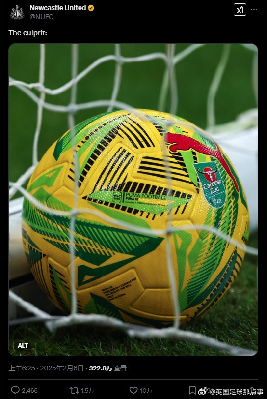 【官方玩梗】聯(lián)賽杯次回合紐卡2-0戰(zhàn)勝阿森納晉級決賽后,紐卡官推曬聯(lián)賽杯用球,配文:罪魁禍首