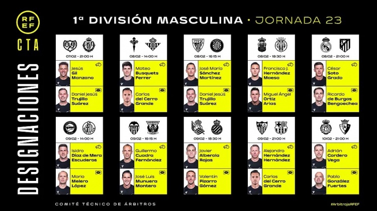 賽前西甲官方公布了本輪各場(chǎng)比賽的裁判安排。格拉多將會(huì)執(zhí)法馬德里德比,而塞維利亞主場(chǎng)迎戰(zhàn)巴薩的主場(chǎng)是埃爾南德斯-埃爾南德斯。