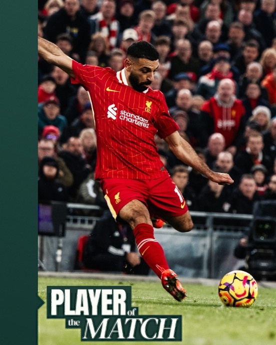 11月3日訊 英超聯(lián)賽第10輪,利物浦主場2-1逆轉(zhuǎn)布萊頓。賽后,利物浦官方曬圖,薩拉赫當(dāng)選本場比賽最佳球員。