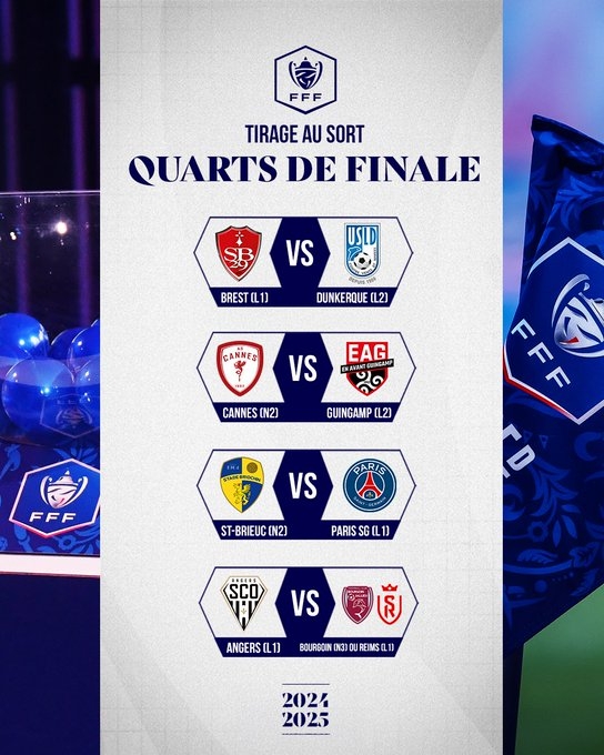 法國杯八強對陣:比賽日為當?shù)貢r間2月26日星期三