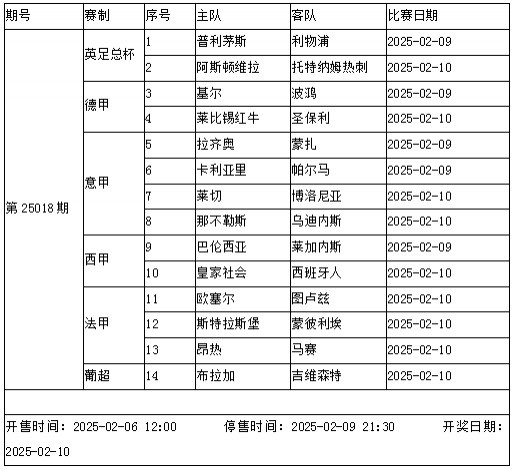 傳足勝負(fù)彩第25018期競(jìng)猜賽事重點(diǎn)關(guān)注豪門(mén)球隊(duì):英足總杯賽事中利物浦和熱刺將分別對(duì)陣普利茅斯和維拉,意甲領(lǐng)頭羊那不勒斯在主場(chǎng)面對(duì)烏迪內(nèi)斯,拉齊奧主場(chǎng)迎戰(zhàn)蒙扎。