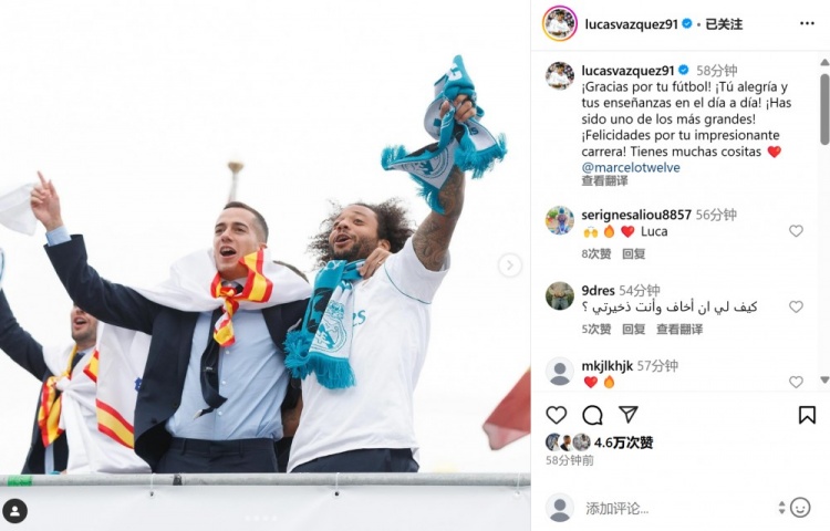 2月7日訊 巴西傳奇球星馬塞洛宣布退役,前皇馬隊(duì)友巴斯克斯也在社媒曬出昔日與馬塞洛慶祝奪冠合影。
