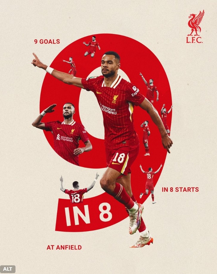 加克波在近8場首發(fā)出戰(zhàn)的主場比賽中,已經(jīng)打進(jìn)9粒進(jìn)球,利物浦官推也曬出加克波海報,配文寫道:“加克波在安菲爾德狀態(tài)火熱!”