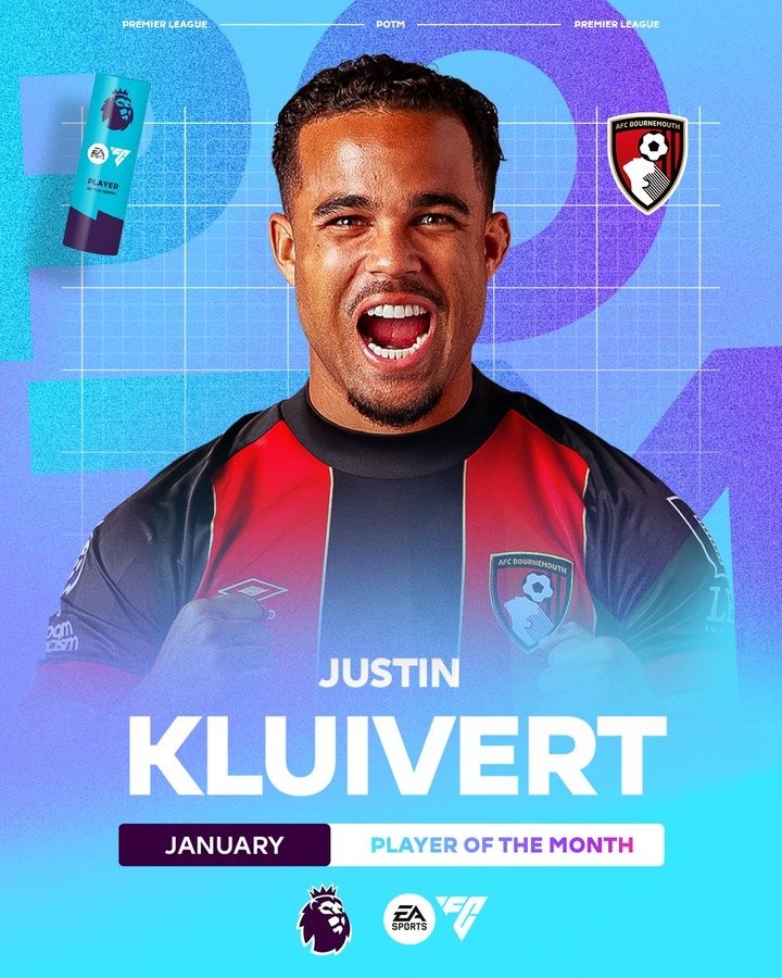 2月7日訊 英超官方已經(jīng)宣布,伯恩茅斯前鋒克魯伊維特當(dāng)選1月英超最佳球員。