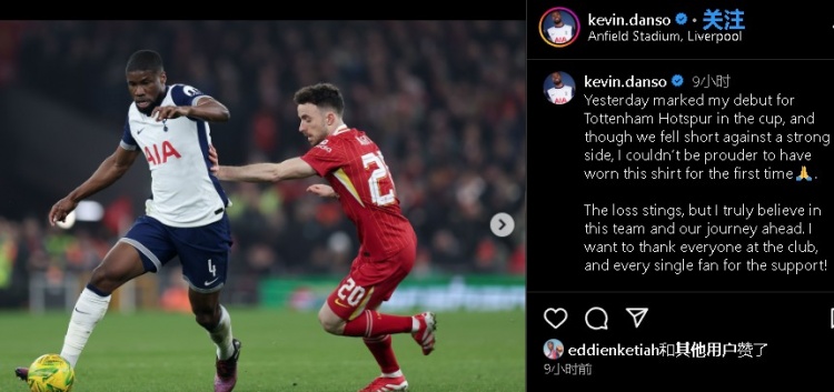 2月8日訊 英聯(lián)杯熱刺0-4利物浦,熱刺新援丹索首發(fā)登場。賽后,丹索更新社媒談到比賽。