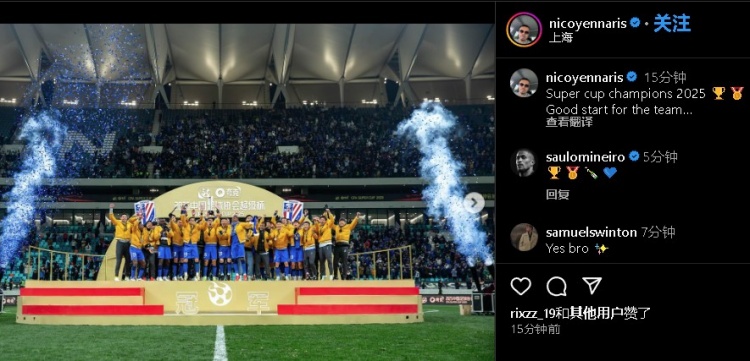 2月8日訊 超級(jí)杯決賽,申花擊敗海港奪得冠軍。申花中場李可更新社媒,慶祝球隊(duì)奪冠。李可社媒:2025年超級(jí)杯奪冠,這是球隊(duì)的完美開局。本場比賽,李可未能代表申花登場。 標(biāo)簽: 足球 中超 中國足球 上海申花
