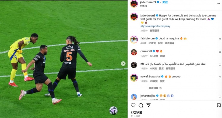 他也在賽后通過社媒曬出自己的比賽照,并配文:“對勝利感到高興,也很開心能夠為這家的偉大俱樂部打進我的處子球,我們會繼續(xù)努力爭取贏得更多。”
