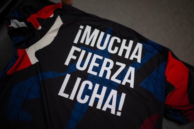 這件熱身球衣上寫(xiě)著:“堅(jiān)強(qiáng),Licha!”(Licha為利桑德羅的昵稱(chēng))
