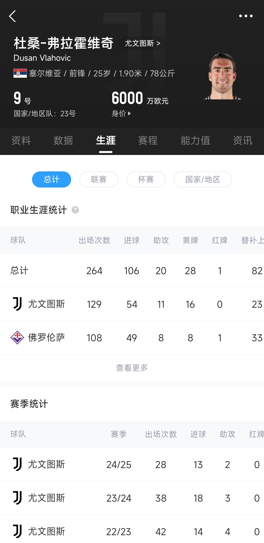 2022年冬窗,尤文以8350萬(wàn)歐元的轉(zhuǎn)會(huì)費(fèi)從佛羅倫薩簽下弗拉霍維奇,迄今弗拉霍維奇代表尤文出戰(zhàn)129場(chǎng)比賽,貢獻(xiàn)54球11助。目前弗拉霍維奇在尤文的稅后年薪為1200萬(wàn)歐元,高居隊(duì)內(nèi)薪資榜首(第二的布雷默500萬(wàn)歐元)。