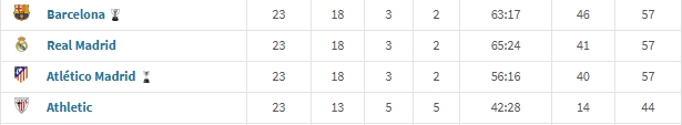 上一次23輪后出現(xiàn)如此焦灼的場面還是13/14賽季。那個賽季23輪后皇薩競3隊同積57分,分列前三。那個賽季爭冠也持續(xù)到最后一輪,最終馬競奪魁。
