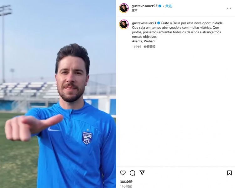 2月10日訊 正式加盟武漢三鎮(zhèn)后,巴西邊鋒古斯塔沃-紹爾在社媒曬出了官宣視頻并發(fā)表了自己的加盟感言。