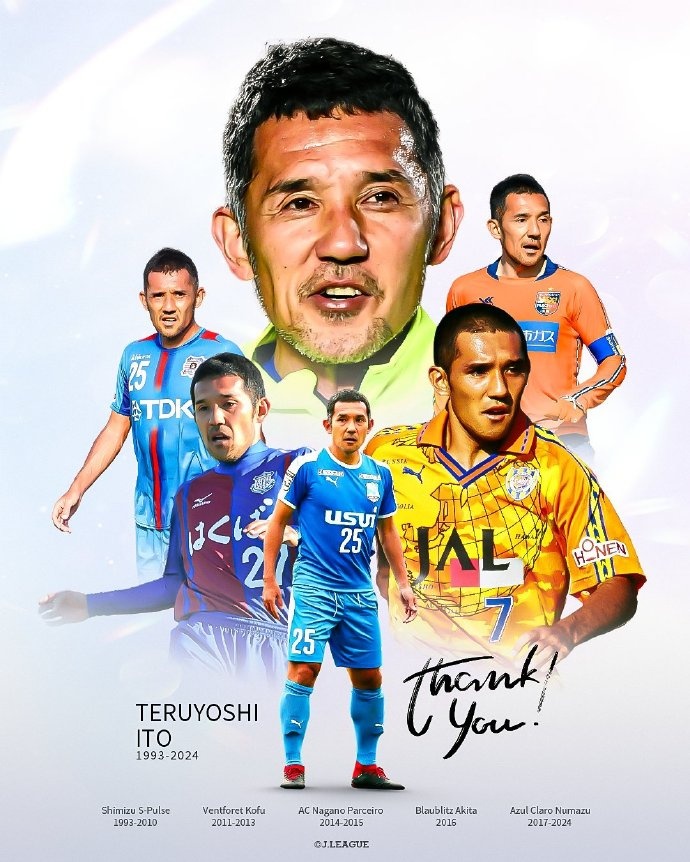 出生于1974年的日本中場伊東輝悅(Teruyoshi Ito)正式退役。他于1993年開始職業(yè)生涯,早年他曾長期效力清水心跳,并曾是日本國家隊成員,隨隊出征了1998年法國世界杯。過去七年他一直在J3的沼津青藍俱樂部效力,較少出場。