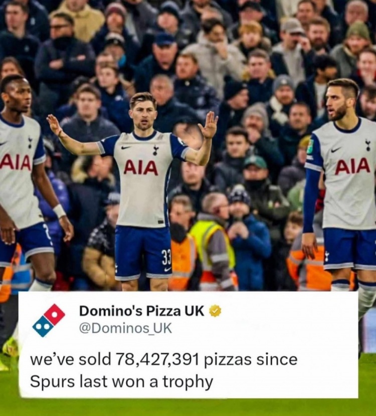 自熱刺上次贏得獎杯以來,我們已經(jīng)售出了78427391個披薩~