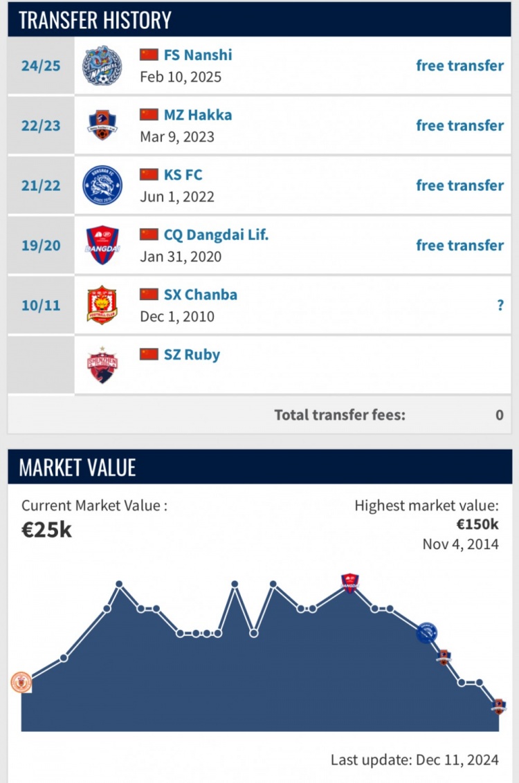 在德轉(zhuǎn)陳杰的個(gè)人頁面中,他已經(jīng)于2月10日加盟佛山南獅,不過合同年限并未披露。本次陳杰屬于自由身轉(zhuǎn)會(huì),因此佛山南獅無需支付轉(zhuǎn)會(huì)費(fèi)用。