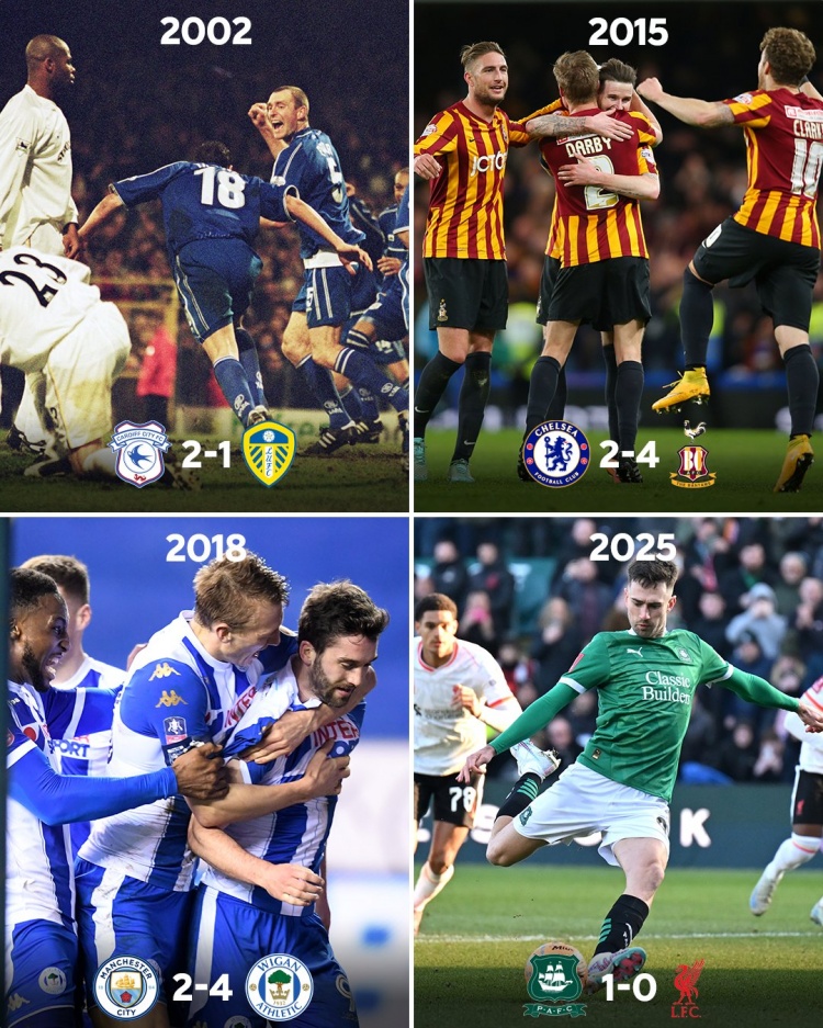 據足總杯官方統(tǒng)計,利物浦是足總杯歷史上第4支被低級別聯(lián)賽球隊淘汰的英超領頭羊,此前3支是利茲聯(lián)(2002)、切爾西(2015)、曼城(2018)。