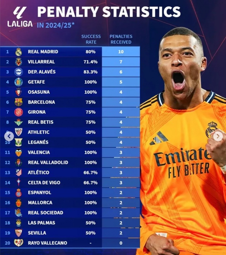 2月11日訊 《轉(zhuǎn)會市場》統(tǒng)計(jì)了本賽季五大聯(lián)賽獲得點(diǎn)球次數(shù)情況,皇馬10次最多,狼隊(duì)和巴列卡諾至今為0。