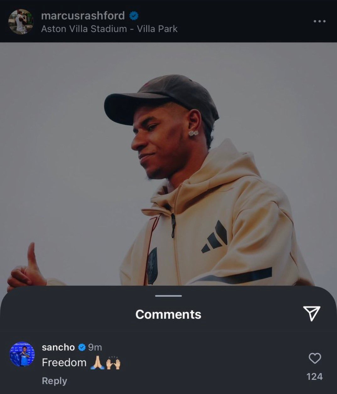 恭喜逃脫魚缸????桑喬在拉什福德ins留言:自由????????